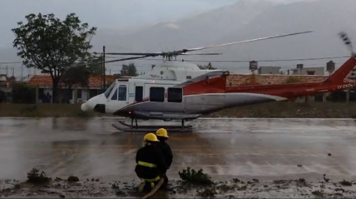 En medio de una tormenta de lluvia, viento y granizo , el BELL 412 de Aviación Civil de la Provincia de Salta , aterrizó hace minutos en el Hospital de Cafayate. Trayendo en su interior a la menor Violeta Maita, quien recibiera heridas por un arma de fuego. También lo hacen los Rescatistas del Cuartel de Bomberos de Cafayate, los que luego de muchas horas de trabajo , lograron su cometido.