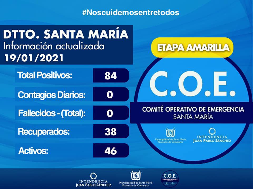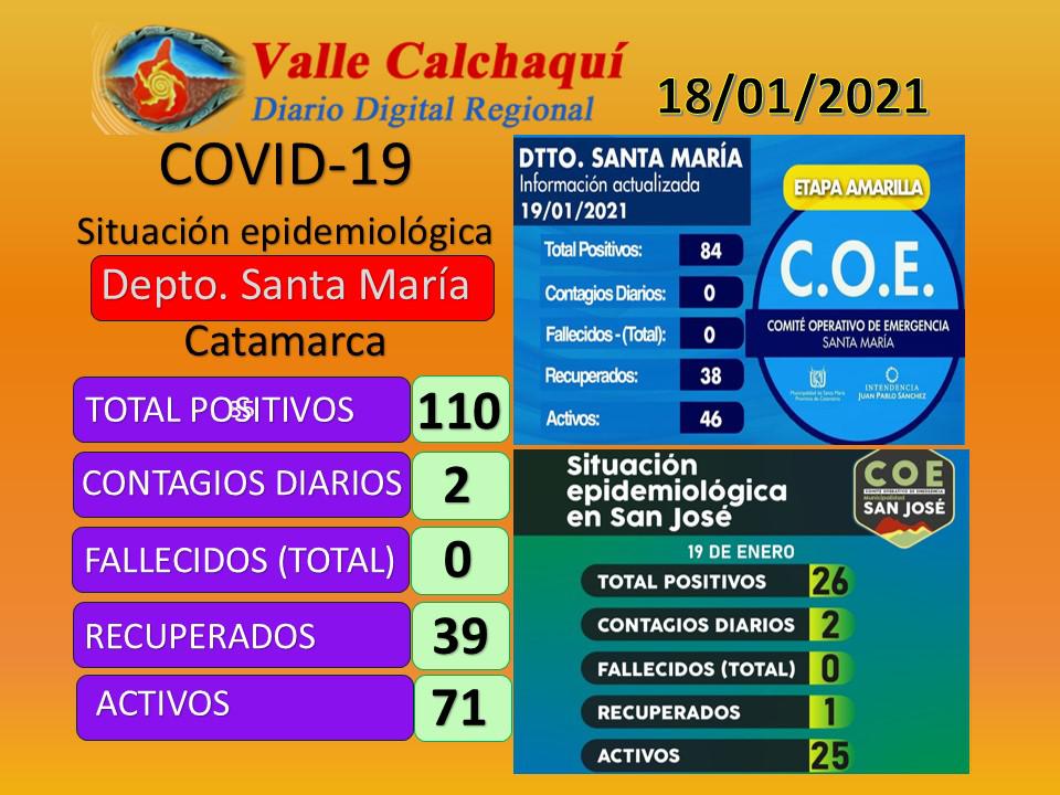 De los 2 casos positivos que informa el comunicado oficial del ministerio de Salud de la Prov. para el departamento Santa María, los 2 pertenecen al municipio de San José.