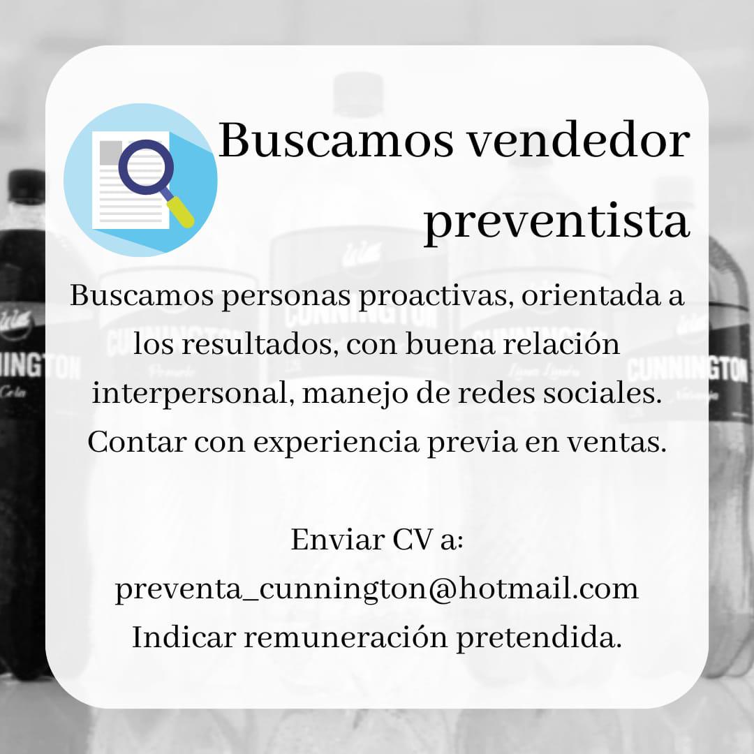Se necesita preventista c/ experiencia y movilidad excluyente (productos consumos masivo), para cubrir zonas de capital de Tucumán, interior de la provincia, Valles Calchaquíes (Amaicha del Valle, Santa María, Cafayate) interesados mandar CV a sebasalmaraz@hotmail.com o al 0381-4138689.