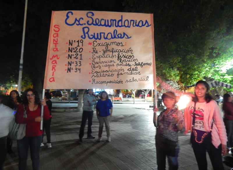Comentó que desde el Ministerio de Educación están realizando bajadas de líneas y amenazan con descuentos a los docentes que se adhieran al paro, en perjuicio de que se abra el diálogo. “Ante las amenazas que recibimos, más fuertes estamos y decididos seguir en la lucha hasta el final” agregó, al tiempo que contó que cuando las delegaciones llegaban a la Capital, la policía caminera hacía parar los móviles para pedir información de a qué escuela pertenecían.