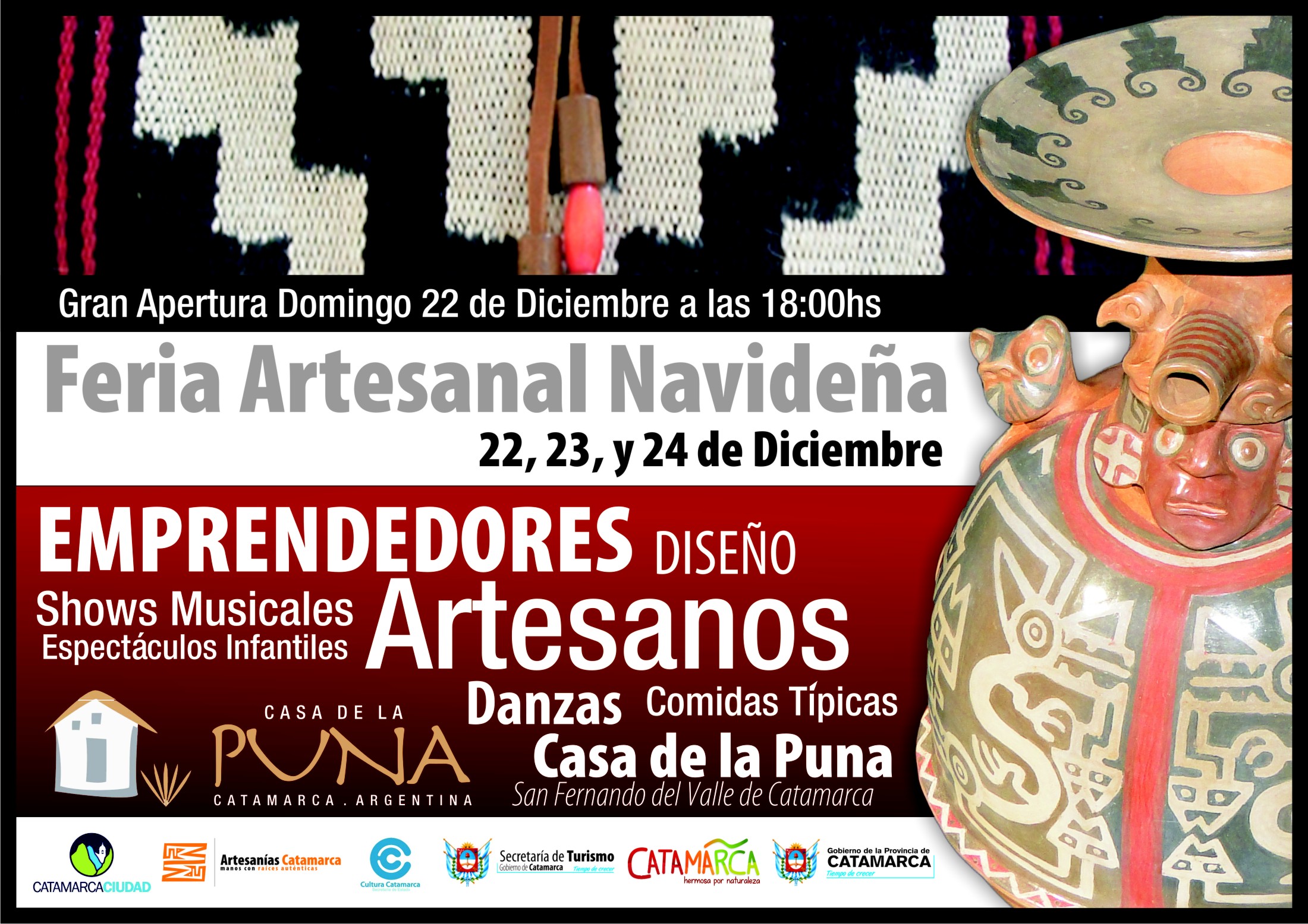 Por eso, desde la Secretaria de Turismo a través de la Dirección de Artesanías de la Provincia y la Municipalidad de la Capital se complacen en invitarlos a la 1ra Feria Artesanal Navideña que se llevará a cabo los días 22, 23 y 24 de diciembre en la Casa de la Puna.