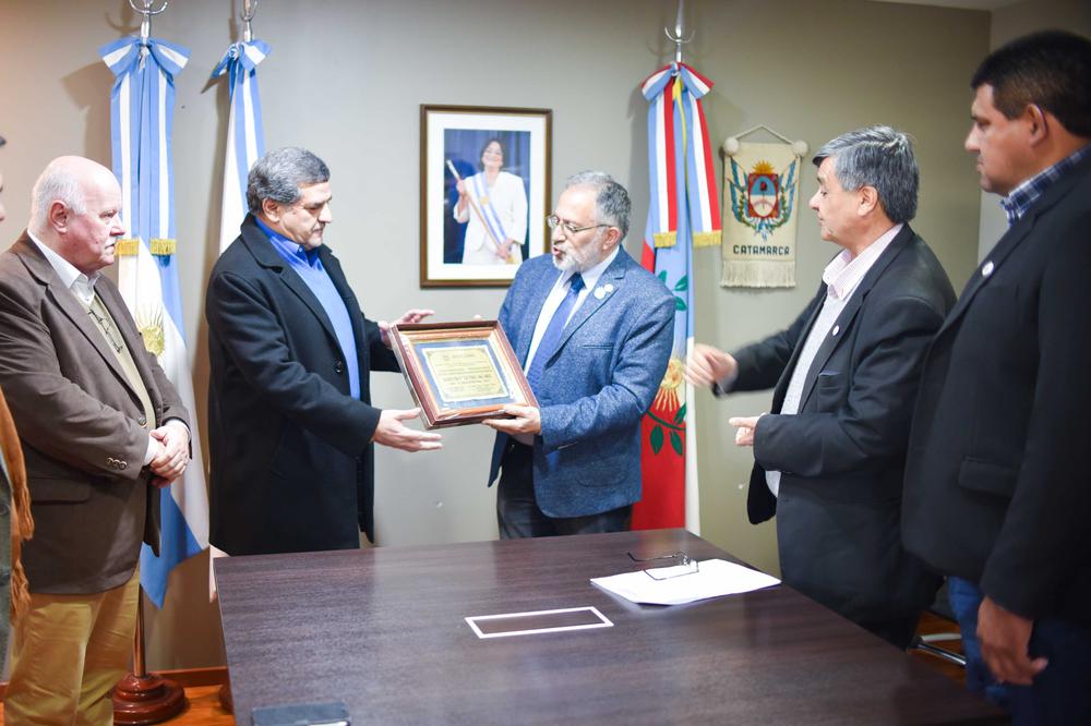 El Director de Radio Valle Viejo Ricardo Gómez visitó esta mañana la Cámara de Senadores donde fue recibido por el presidente provisorio Jorge Solá Jais y sus pares Ramón Seco, Jorge Malnis y Ricardo Quinteros; y el secretario Parlamentario Omar Kranevitter, quienes le hicieron entrega de una placa alegórica, teniendo en cuenta los 30 años de permanencia al aire, en el 104.1 del dial.