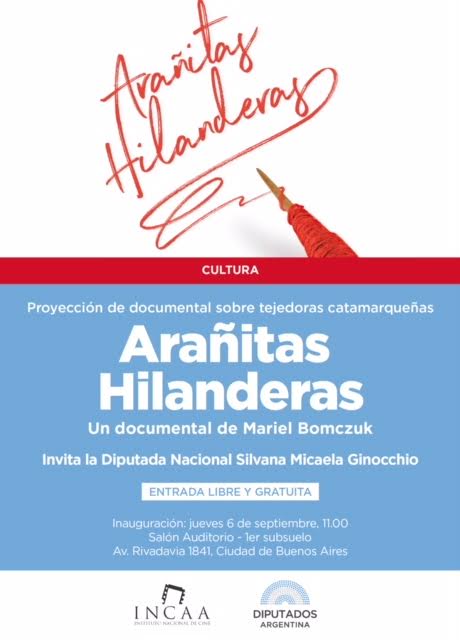 Por una gestión de la Diputada Nacional Silvana Ginocchio, del Bloque "Elijo Catamarca", se proyectará en el Congreso de la Nación el documental “Arañitas Hilanderas”, de la conocida realizadora Mariel Bomzuk.