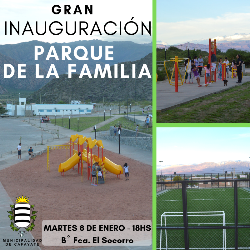 Mañana martes 8, a las 18, será la inauguración del Parque de la Familia, en Barrio Finca El Socorro, Cafayate.