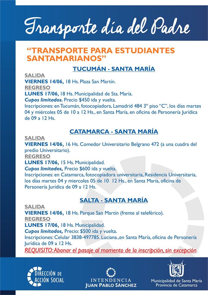 Para el fin de semana en que se celebrará el Día del Padre, el Municipio de Santa María dispondrá de ómnibus para el traslado de Estudiantes en otras provincias. Con un costo mínimo, los jóvenes podrán venir y disfrutar con su familia este importante día.