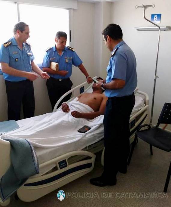 A las 12:00 del mediodía de ayer, el Sr. Jefe de Policía, Crio. Gral. Lic. Orlando Antonio Quevedo, junto al Subjefe de Policía, Crio. Gral. Carlos Alfredo Kunz, al Jefe de la Unidad Regional N° 3, Crio. Gral. Víctor Aníbal Parra e integrantes de la Plana Mayor Policial llegaron hasta un Sanatorio Privado de calle Junín al 300, y visitaron al Cabo Primero Walter Gustavo Cerpa (32), quien permanece internado tras protagonizar un siniestro vial el pasado 1 de noviembre del corriente año, en la ruta nacional N° 40, a la altura del Kilómetro N° 4.196, en la localidad de San José, Dpto. Santa María, cuando realizaba la custodia de un maratonista oriundo de la provincia de Buenos Aires.