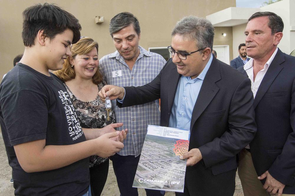 El gobernador Raúl Jalil formalizó la entrega de un barrio completo de viviendas sociales realizadas por el Gobierno provincial en la localidad de Saujil, en el departamento Pomán.