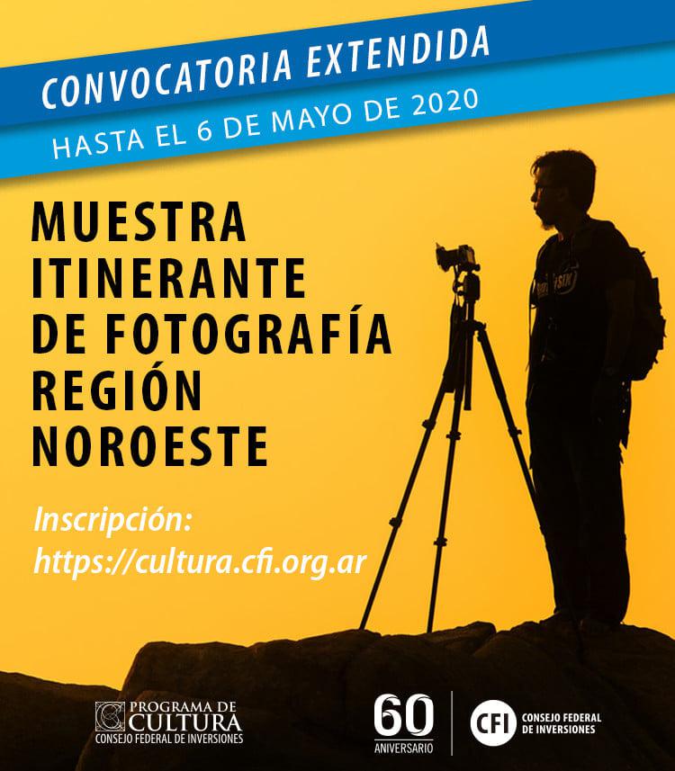 El Ministerio de Cultura y Turismo de Catamarca informa que se extiende hasta el 6 de mayo inclusive la convocatoria a participar de la Muestra Itinerante de Fotografía de la Región Noroeste, impulsada conjuntamente entre el Programa de Cultura del Consejo Federal de Inversiones (CFI) y el Consejo Regional Norte Cultura (CRNC).