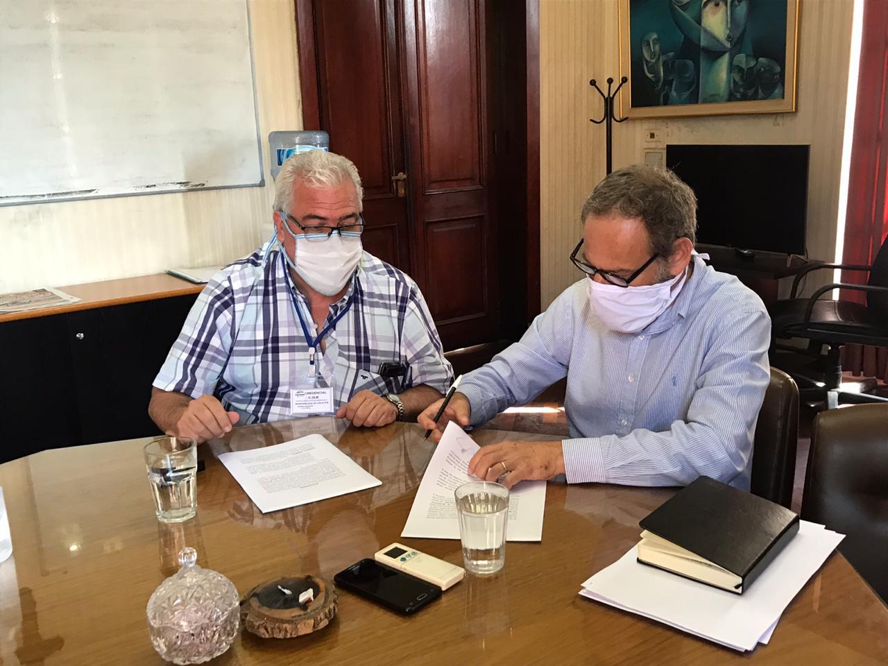 El ministro de Agua, Energía y Medio Ambiente, Alberto Kozicki y el intendente Cesar Rafael Olveira, rubricaron un convenio de cooperación mutua para la ejecución y mantenimiento de obras de agua para Los Altos.