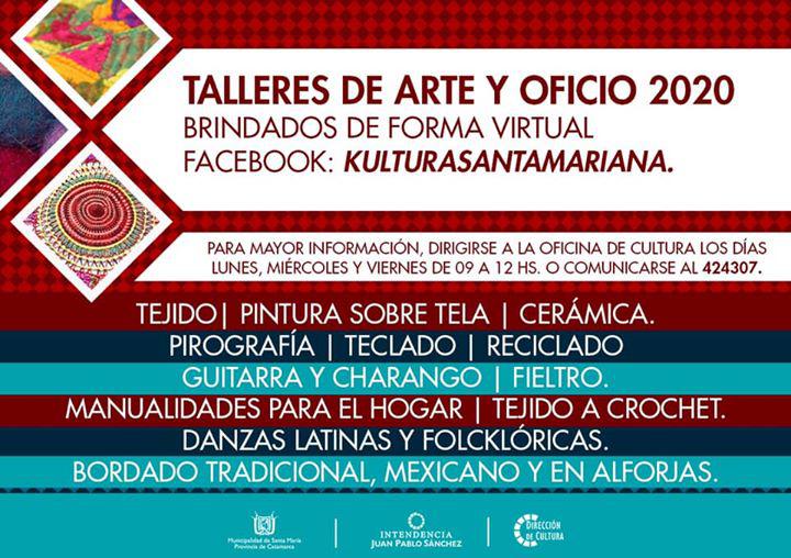 La dirección de cultura municipal invita a participar de los talleres culturales 2020 de manera virtual.