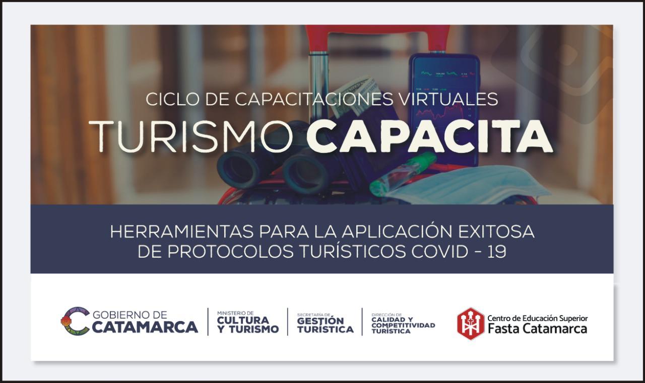 Se completó esta semana el primer curso del ciclo de capacitaciones virtuales “Turismo Capacita”, propuesto por el Ministerio de Cultura y Turismo de Catamarca, a través de la Dirección Provincial de Calidad y Competitividad de la Secretaría de Gestión Turística, en el que se brindaron herramientas necesarias para la aplicación de protocolos turísticos COVID-19.