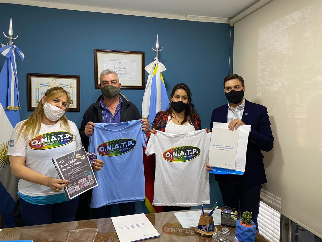 En el día internacional contra la explotación sexual y tráfico de personas, el Observatorio de Género de la Vicegobernación representado por la subsecretaria administrativa Alina Chaile, y los senadores José Luis Martínez -presidente de la Comisión de Mujer, Género, Diversidad y Familia- y Raúl Barot, recibieron a la referente de la ONG No a la Trata de Personas de Catamarca, Ana María Contrera.