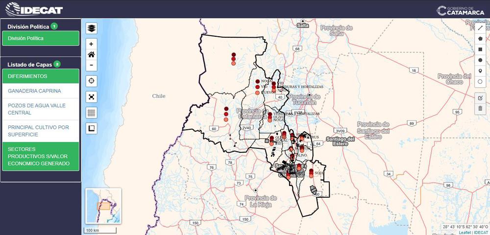“A partir de la puesta en funcionamiento del Nodo IDE Inversión y Desarrollo brindado por la Dirección de IDECAT (Infraestructura de Datos Espaciales Catamarca), hemos cargado y continuamos trabajando en la carga de distintas capas de información en un servidor que permite resguardar el trabajo en la nube, y en un visualizador web, que posibilita el acceso público a las distintas capas que van conformando el mapa. De esta manera, a través del link nodoide.catamarca.gob.ar/inversion/visor los interesados (productores, investigadores, inversores, etc) podrán visualizar la información productiva, y autogestionar los datos y mapas que requieran”, precisó la funcionaria.