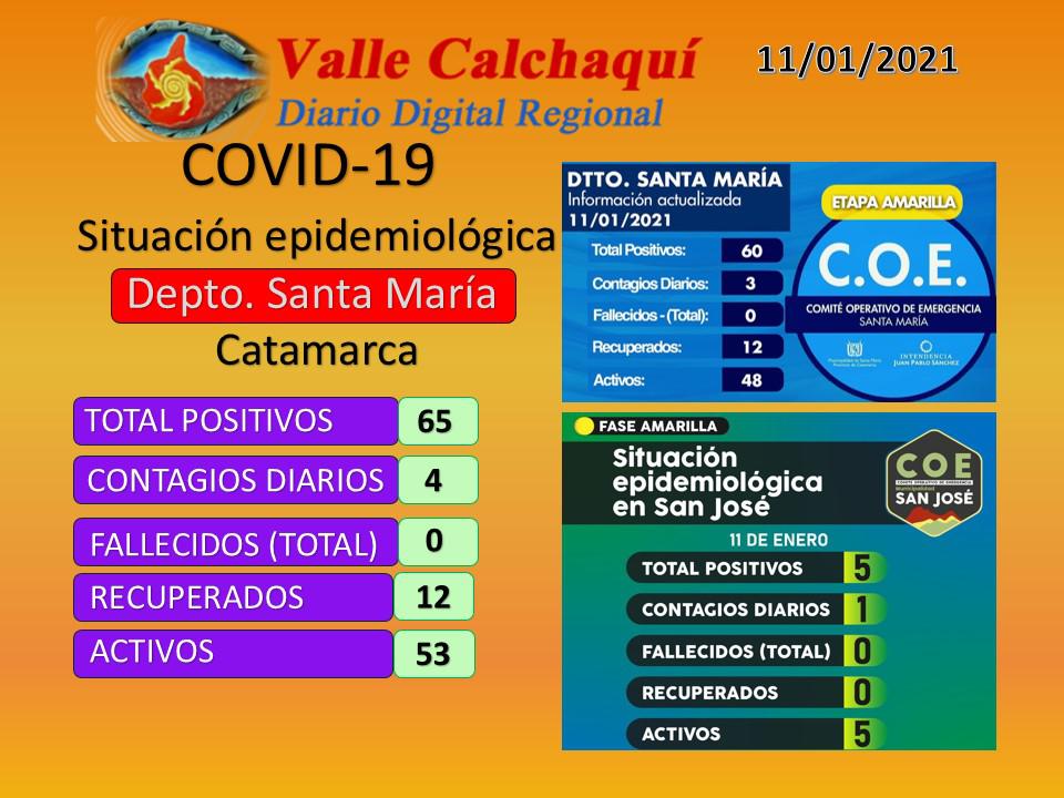 El restante caso positivo que informa el ministerio de salud de la provincia, para el departamento Santa María, pertenece al municipio de San José. Cabe aclarar que por un error involuntario informa en su parte oficial un quinto caso que no es correcto. El total de casos en el departamento para el día de hoy es: 4 (cuatro) casos.