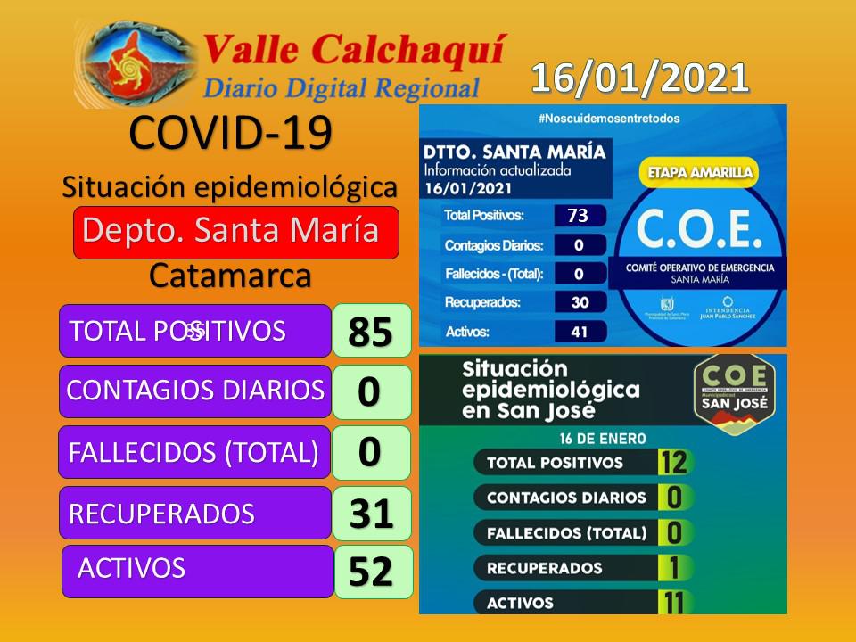 El Comité Operativo de Emergencia del distrito San José informa que en el día de la fecha no se detectaron casos positivos de Covid 19 en San José.