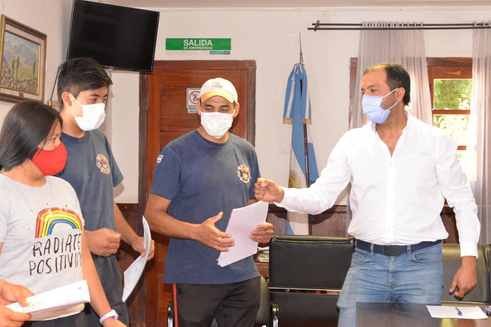 El intendente C.P.N Juan Pablo Sánchez, recibió en su despacho a los jóvenes integrantes del cuartel de bomberos, y les ratificó esta importante ayuda como retribución y agradecimiento por la tarea que llevan a cabo desde el inicio de la pandemia, con la colaboración en la zona de controles en el acceso norte por R.P N°17, en lo que respecta al sector paquetería, modalidad que sigue funcionando de la misma manera.