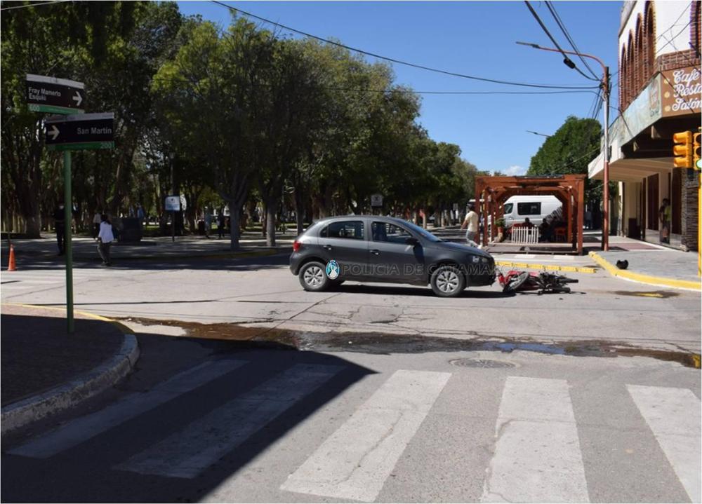 A las 10:50 de la mañana de hoy, se registró un siniestro vial en la intersección de las calles Fray Mamerto Esquiú y San Martín, de la Ciudad de Santa María, Departamento Homónimo.