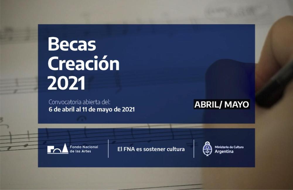 La convocatoria a las Becas Creación 2021 estará abierta hasta el próximo martes 11 de mayo. En este 2021 el Fondo Nacional de las Artes se enfocará en fortalecer, fomentar y estimular la concreción de proyectos artísticos-culturales con una mirada amplia y federal.