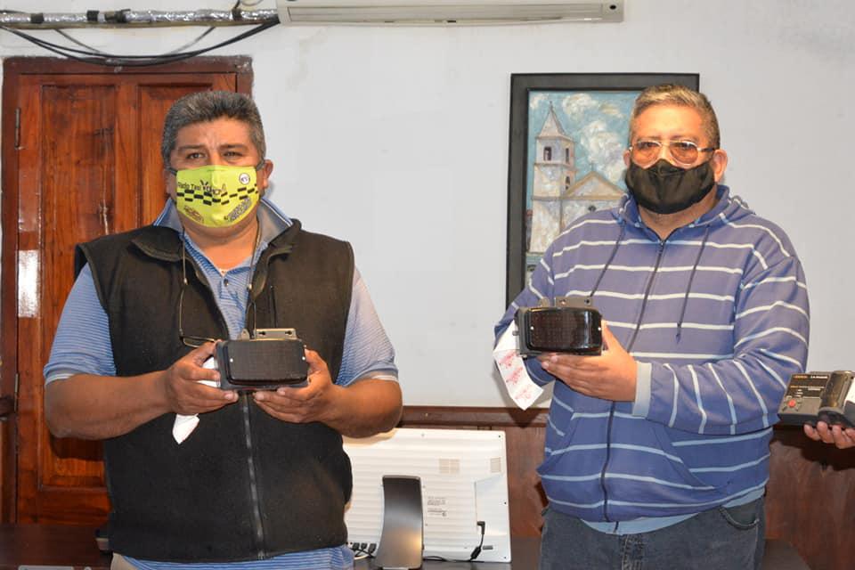 El presidente de la Comisión de Taxis y Remises, Edgardo Flores y al licenciatario Sr. Jorge Álvarez, recibieron de 40 relojes tarifarios, que serán destinados a las 9 agencias de remises existentes en el medio.