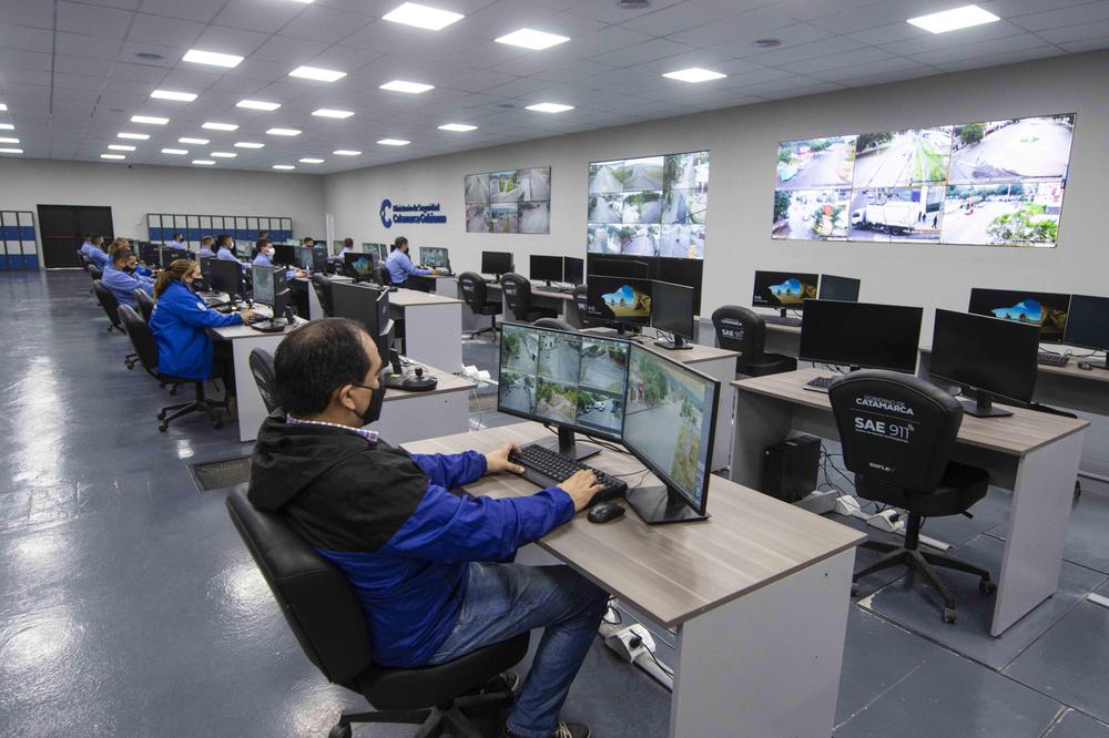 Luego, el gobernador junto al jefe comunal, recorrieron las instalaciones del SAE 911, desde donde se monitorean 173 cámaras ubicadas en 110 puntos de la ciudad y Valle Viejo.