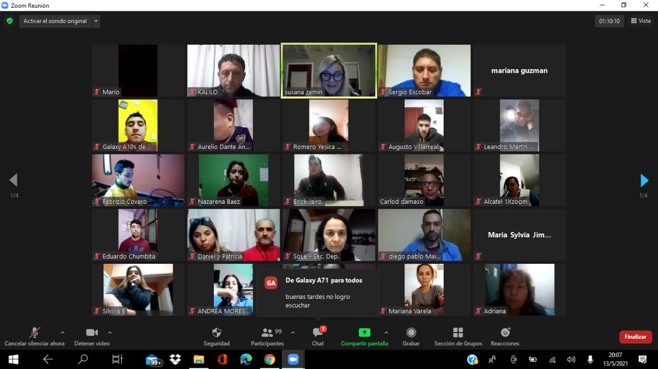 A través de la plataforma Zoom, ayer se llevó a cabo un curso sobre actividad física y entrenamiento para adultos mayores, con la Licenciada Susana Edith Zemin de la Secretaría de Deportes de la Nación como disertante, con la organización de la Dirección Provincial de Capacitación, a cargo de Luis Robledo, y la presencia de la Secretaria de Deportes y Recreación, María Sylvia Jiménez.
