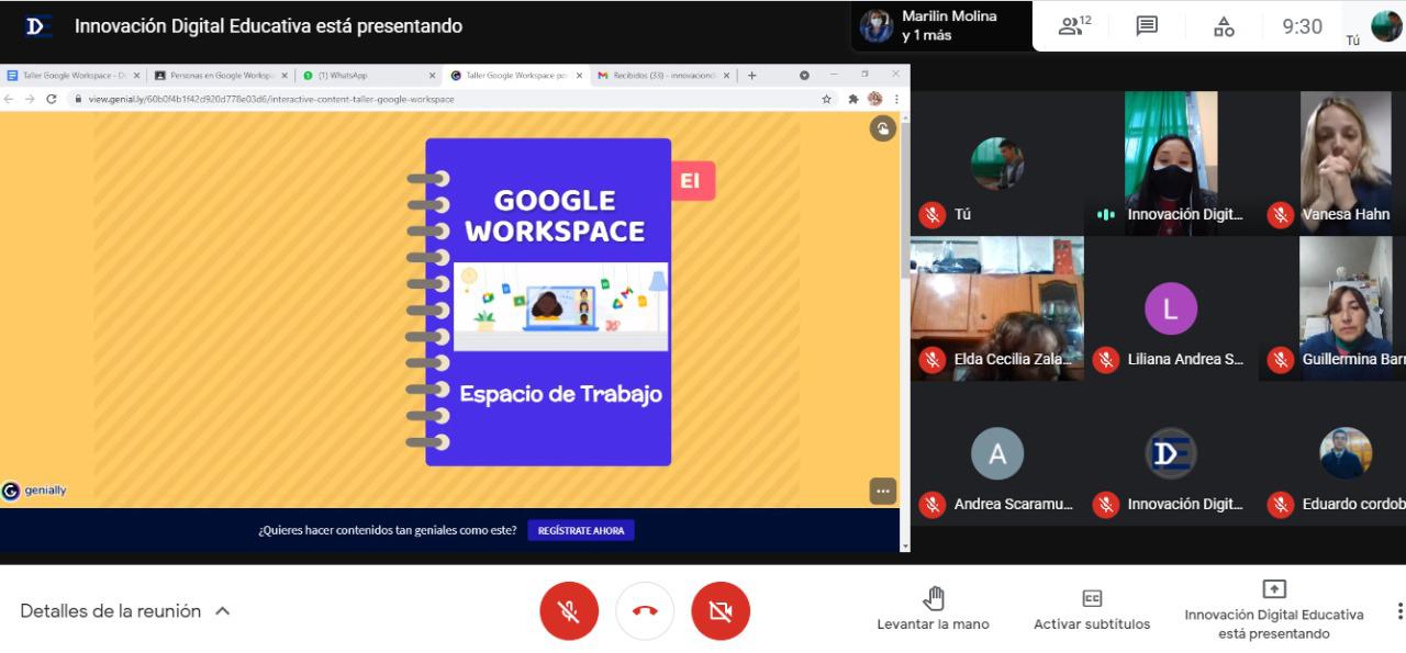 Estas capacitaciones se llevan a cabo con el objetivo de desarrollar una mirada crítica en el diseño y elaboración de material didáctico y pedagógico digital, mediante la herramienta Google Workspace, generando una enseñanza de calidad en la modalidad no presencial. En esta primera cohorte, los docentes que están siendo formados por el equipo pedagógico de IDE, pudieron acceder a esta nueva experiencia integrada que incluye todas las aplicaciones de productividad de Google, como Gmail, Calendario, Drive y Meet.