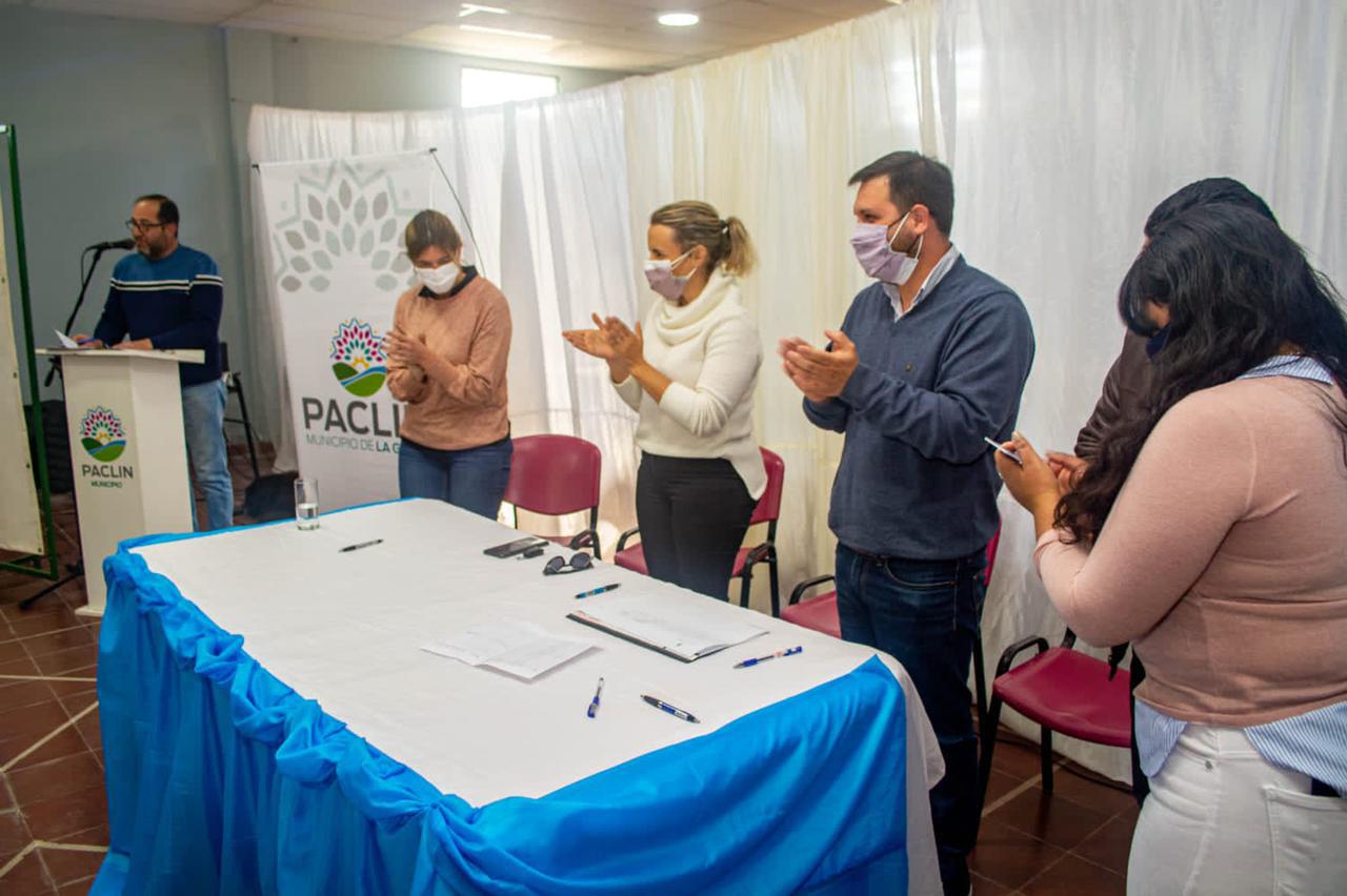 Junto al intendente de Paclín, Eduardo Menecier, y la jefa de Agencia Territorial del Ministerio de Trabajo y Empleo, Ely Fontao, hicieron entrega de tres becas del Programa Promover, para la inclusión socio laboral de estos usuarios. Los mismos van a desempeñar tareas en diferentes lugares a cargo del Municipio, acorde a un plan terapéutico establecido por Terapistas Ocupacionales, que son las encargadas de analizar el perfil laboral de los usuarios y acompañarlos en la adaptación.