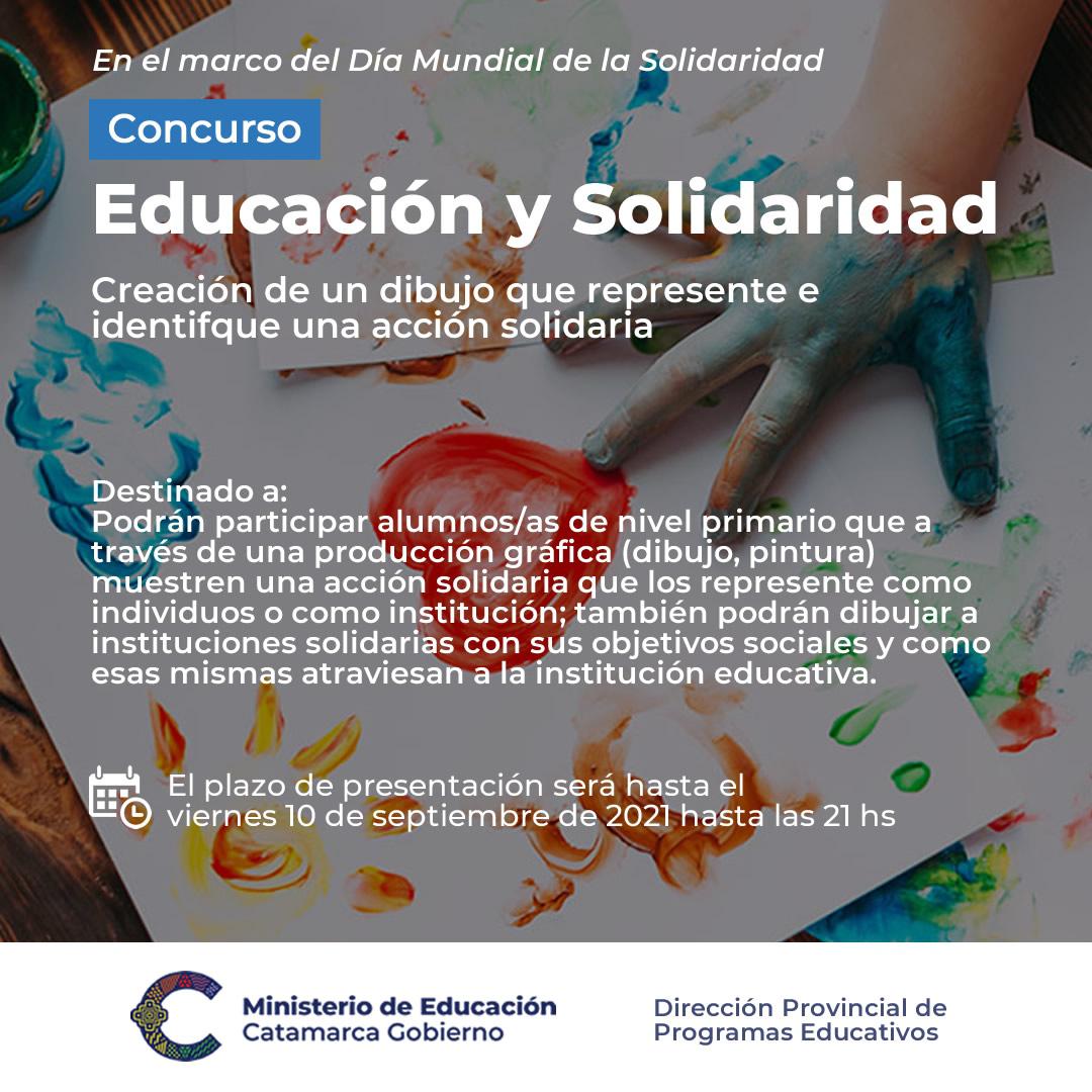 En el marco del Día Mundial de la Solidaridad el Ministerio de Educación junto al "Programa Educación Solidaria" perteneciente a la Dirección Provincial de Programas Educativos te invitan a participar del concurso para la creación de un dibujo que represente e identifique una acción solidaria.