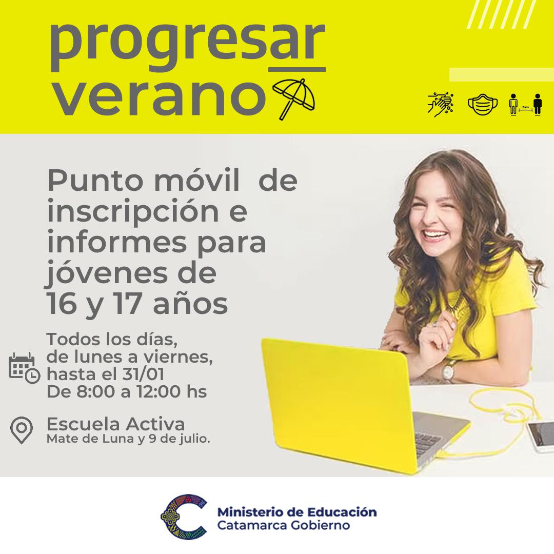 El Ministerio de Educación informa que durante esta semana y hasta el lunes 31 de enero en Escuela Activa estará abierto el punto de inscripción para jóvenes de 16 y 17 años que quieran acceder a la ampliación de las Becas del “Programa de Respaldo a Estudiantes Argentinos” - Progresar.