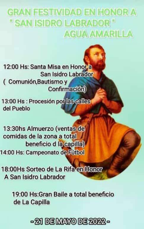 Esta mañana, el Intendente de la Municipalidad de San José, Prof. José Antonio Gómez entregó al Presidente de la Comisión de la Capilla de Agua Amarilla, Alberto Yampa un subsidio para la realización de la festividad en honor a San Isidro Labrador, mañana sábado 21 de mayo.