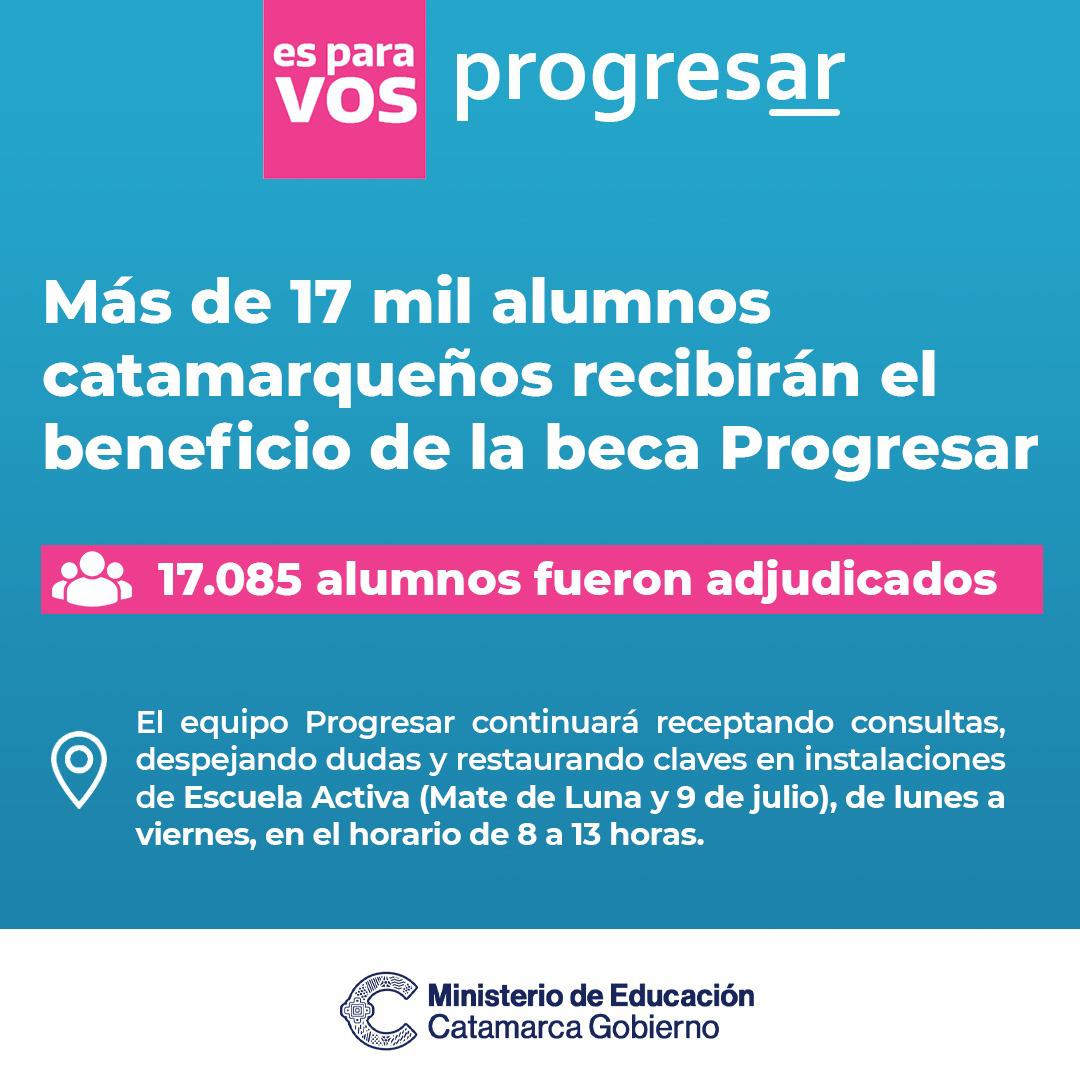 Además, el equipo Progresar continuará receptando consultas, despejando dudas y restaurando claves en instalaciones de Escuela Activa (Mate de Luna y 9 de julio), de lunes a viernes, en el horario de 8 a 13 horas.