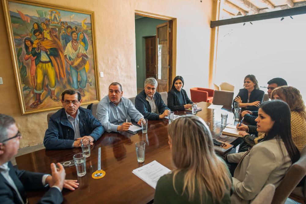 El gobernador Raúl Jalil, junto a la ministra de Educación, Andrea Centurión, y de Desarrollo Social, Juan Carlos Rojas, y sus equipos técnicos, se reunieron hoy para avanzar en la implementación de la ampliación del horario escolar en las Escuelas Primarias de la provincia.