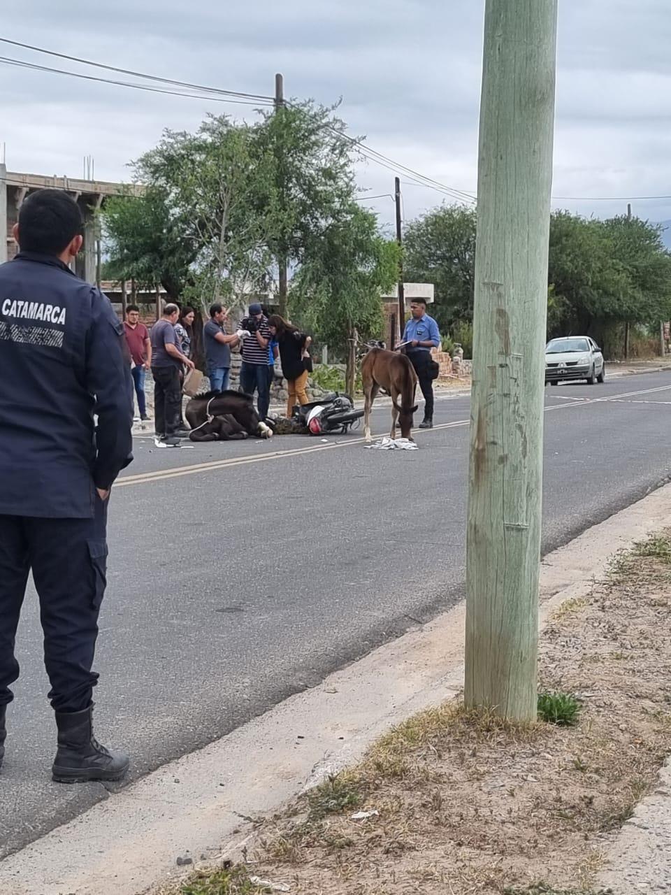 En la mañana de este viernes, en la Avda. Diego Gutiérrez Pedraza, a la altura de la localidad de El Cerrito, un joven de 19 años que circulaba en una motocicleta colisionó con un animal equipo.