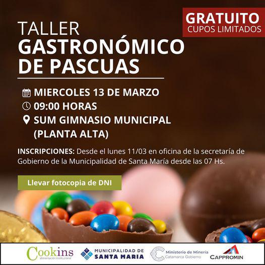La municipalidad de Santa María, conjuntamente con la empresa minera Cookins, invitan a participar este miércoles 13 de marzo, del Taller Gastronómico de Pascuas.
