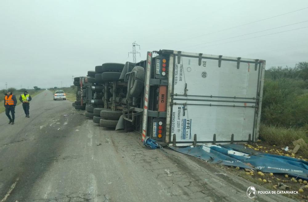 Juan Antonio Copacaba (57), oriundo de la Provincia de La Rioja, circulaba en un camión Scania G310, dominio AA880XE, de color blanco, con acoplado, en el que transportaba limones, y por razones que se tratan de establecer perdió el control del rodado y volcó a un costado de la banquina.