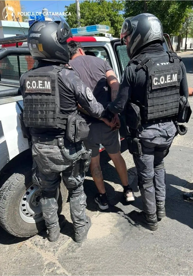 Tras perpetrar los ilícitos, el sujeto llegó hasta un domicilio ubicado en el pasaje Gral. Navarro al 500, y abandonó el rodado, para luego ingresar a un inmueble, cambiarse de ropa, saltar una tapia colindante con un sitio baldío, abordar un remis y continuar la huída, iniciándose el seguimiento del mismo que finalizó en la intersección de las calles Capital Federal y Víctor Mauvencin, donde fue interceptado por efectivos del COEM-Kappa y de la Comisaría Segunda, quienes recuperaron los aparatos de comunicación, que quedaron en calidad de secuestro.