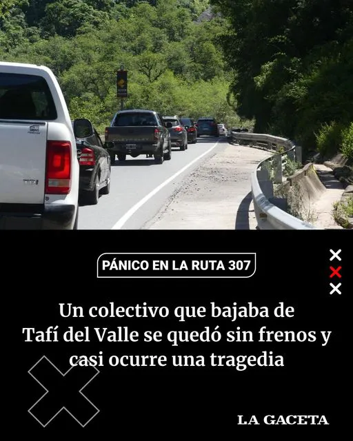 La destreza del chofer de un colectivo con turistas, al atardecer de este viernes, evitó lo que podría haber terminado en una tragedia. La unidad, que descendía desde Tafí del Valle con más de 30 ocupantes, al parecer se quedó sin frenos en el kilómetro 40 de la ruta 307.